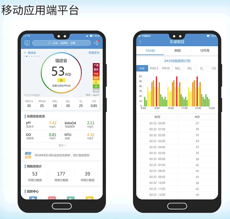 提供全面的移動(dòng)端支持,為現(xiàn)場(chǎng)執(zhí)法提供詳細(xì)數(shù)據(jù)統(tǒng)計(jì)和報(bào)告。通過(guò)手機(jī)APP可查看城市空氣質(zhì)量、各站點(diǎn)排名包括環(huán)境指標(biāo)隨時(shí)間變化、各站點(diǎn)實(shí)時(shí)監(jiān)控視頻,幫助執(zhí)法人員更便捷的處理任務(wù)。